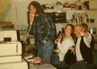 Vi redigerare hamrade ihop sidor i en galen hastighet och vi blev goda vänner: Där satt Mona Johansson, Catharina Enblad (numera Nordlund), Bengt Rydsjö, Lina Tenow och många fler som kom och gick. Särskilt stressigt var det när vi hade enkelproduktion och fick lämna en extratjock tidning extra tidigt. Då brukade företaget köpa tårta. (vilket man så klart inte hann äta, man hann inte ens kissa före lämning). Vid redigerarbordet satt också ofta Eric Ljunggren som fortfarande är den enda kollega vars studentmottagning jag har varit på. Han fick sitt fasta kontrakt som studentpresent.